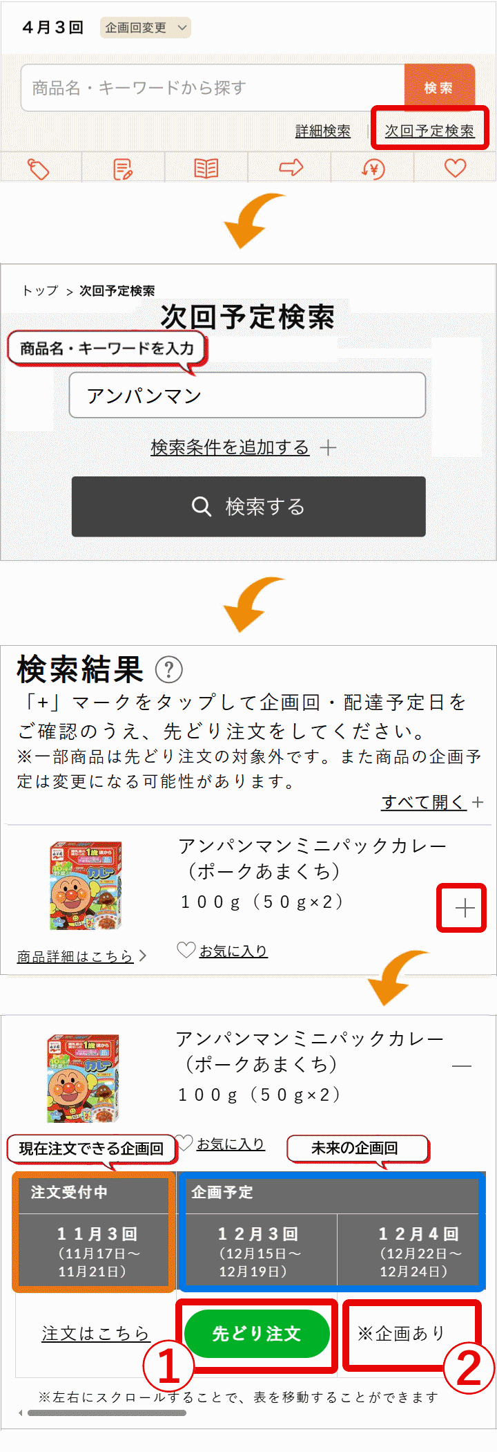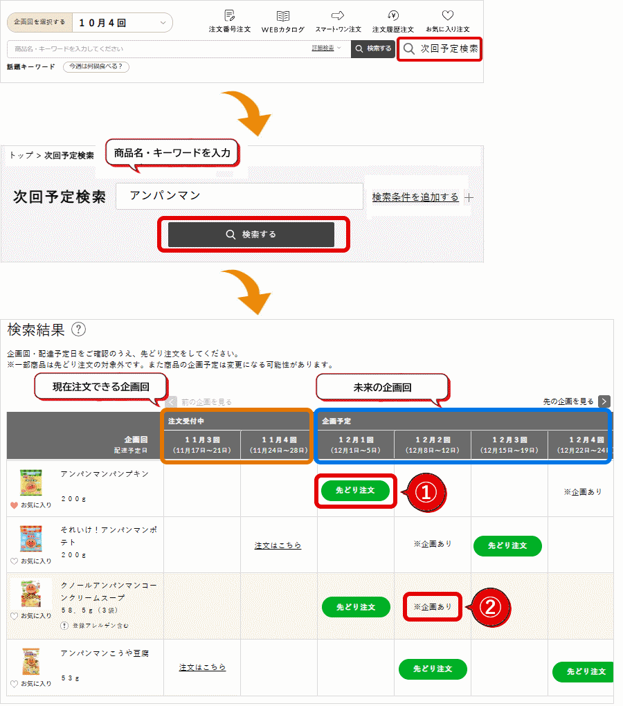 次回予定検索・先どり注文の仕方