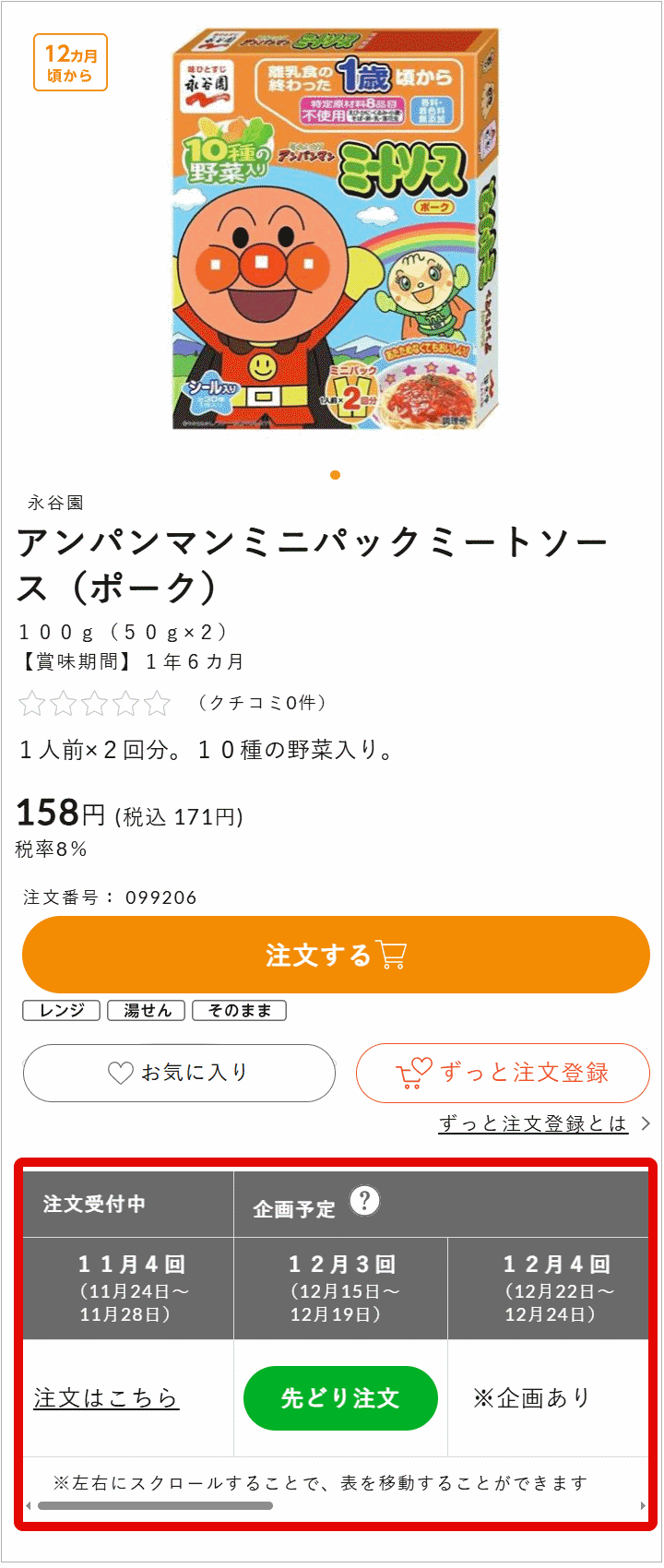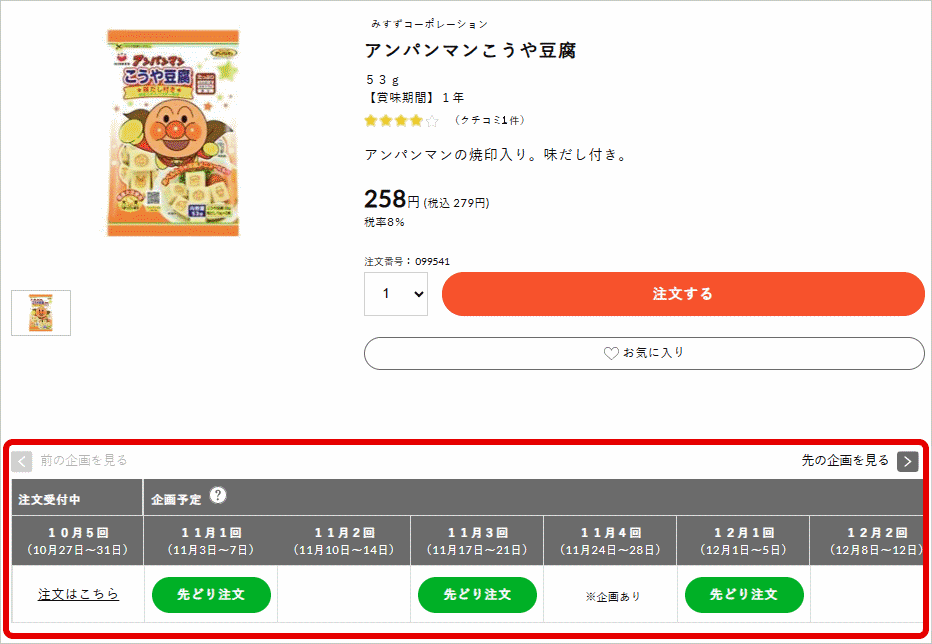 ◆通常の商品詳細画面からも、次回企画の確認と先どり注文することができます